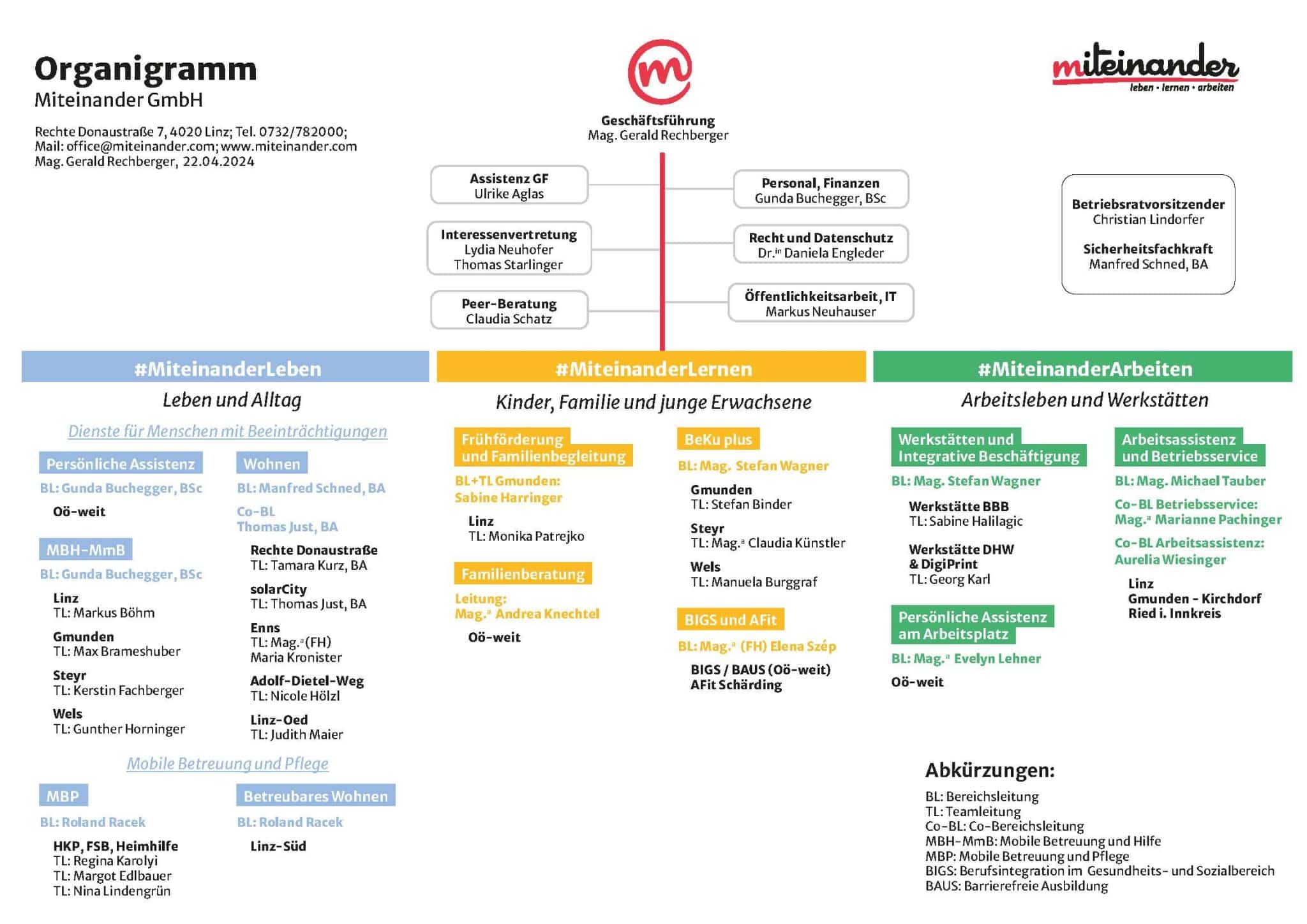 Mit 12 Bereichen und vielen weiteren Dienstleistungen, kann man in unserer Firma schnell den Überblick verlieren. Wie ist die Miteinander organisiert und wer steht hinter welchen Bereichen? Mehr dazu in unserem Organigramm!